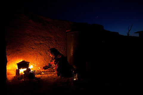 In Binika, Kurdistan, DiCampo learns, “the village pools their money to run a community generator one or two hours each day.” The generator cannot power heavy appliances or machinery. “While satellite dishes and televisions are cheap in the area, fuel for a generator is ‘very expensive.’” DiCampo’s image below shows a woman cooking by an open fire in Kurdistan.
